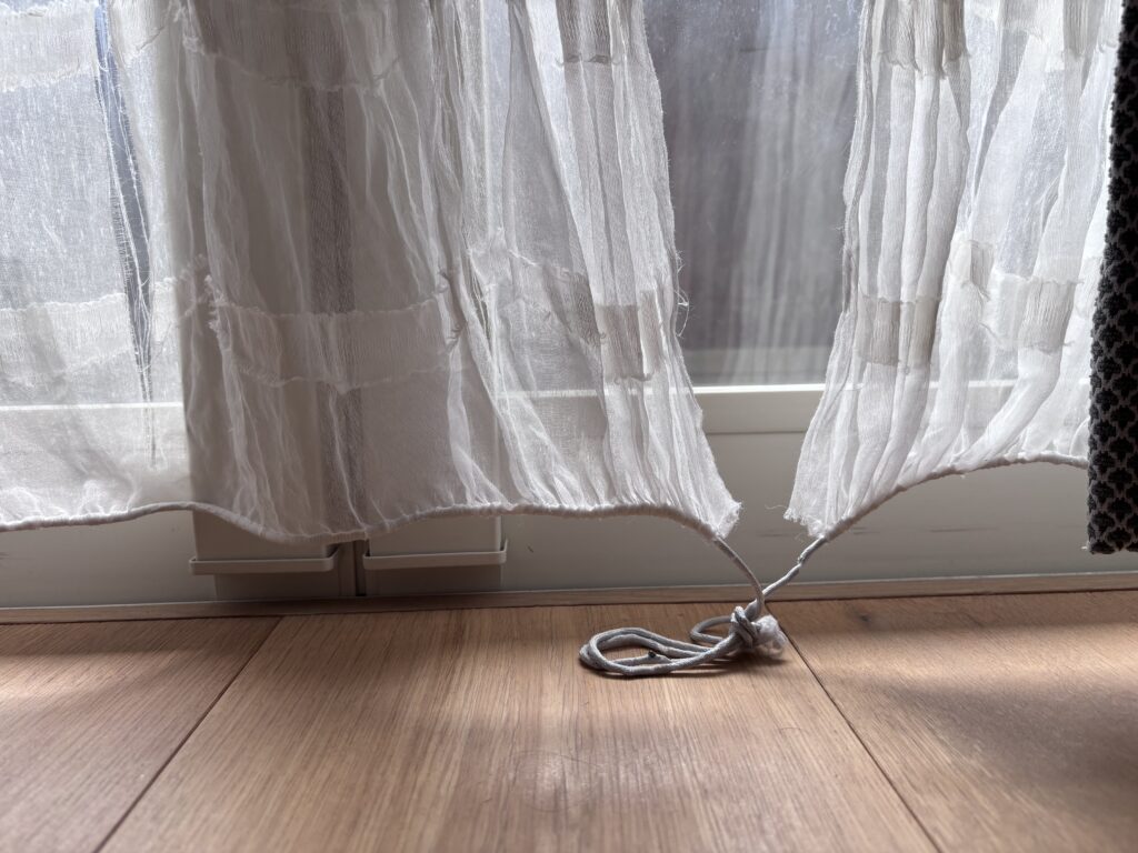 結果、亀裂が入り、子供の遊び道具として亀裂が広がり気づけばビリビリに破れたカーテンに…