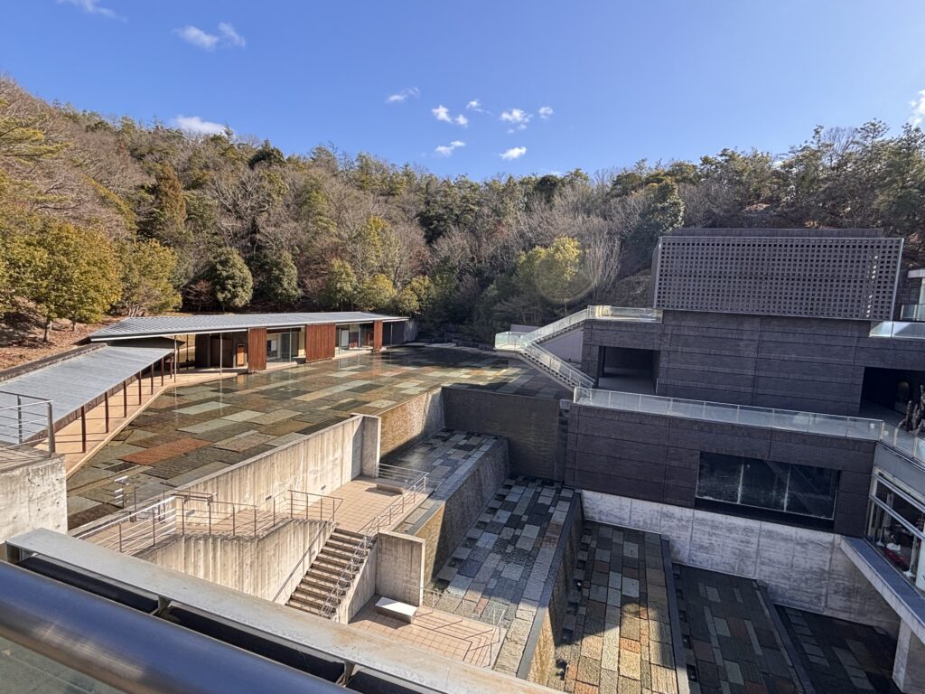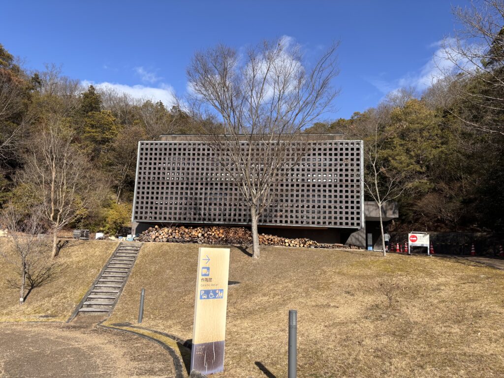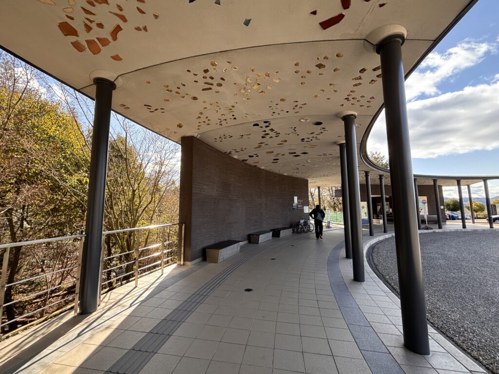 陶器が埋め込まれたアプローチを進むと、岐阜県現代陶芸美術館があります。