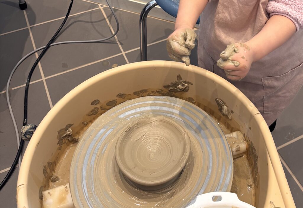 みんな初めてのろくろでしたが、4歳も粘土遊び感覚で楽しんでました。
