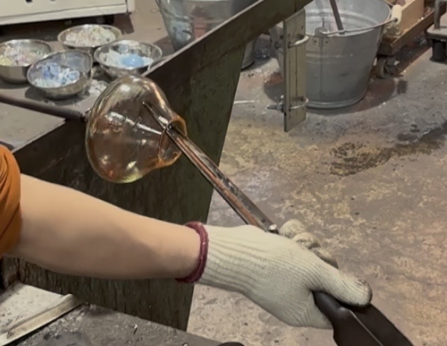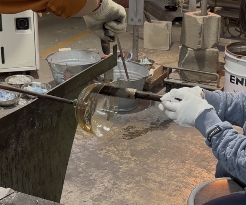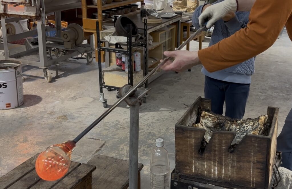吹きガラス体験では、小学2年生の息子でもできるように、
