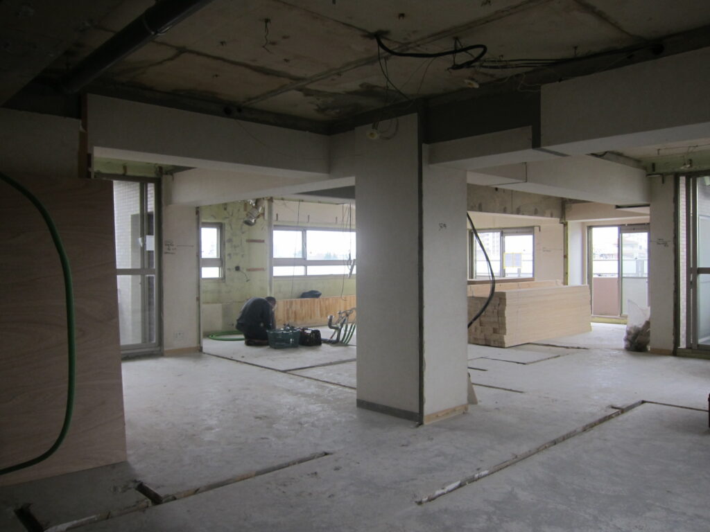 ↓解体が終わり、設備屋さんが床下に隠れてしまう配管の工事をしてくれています。