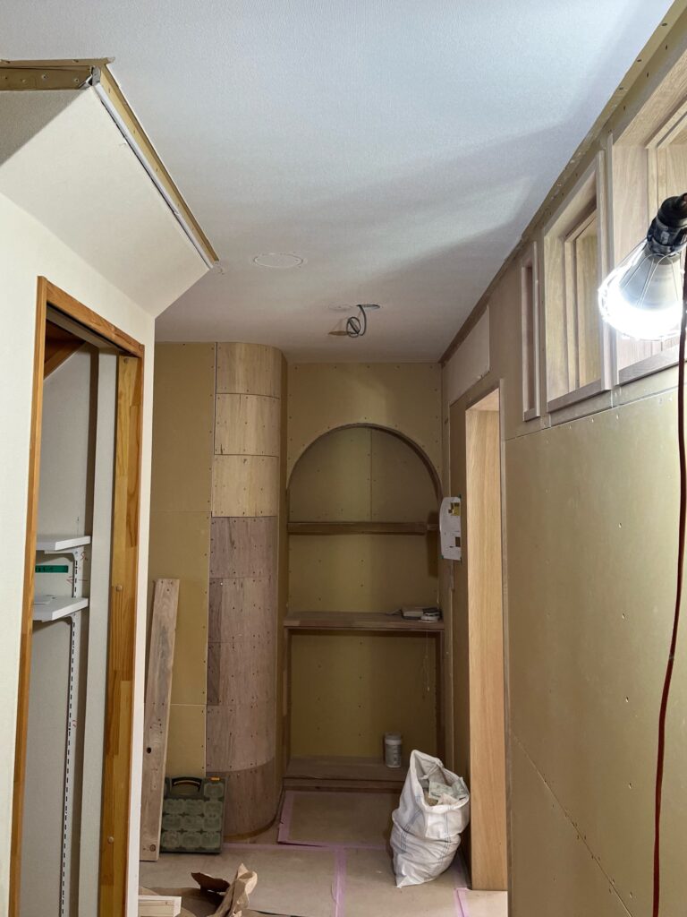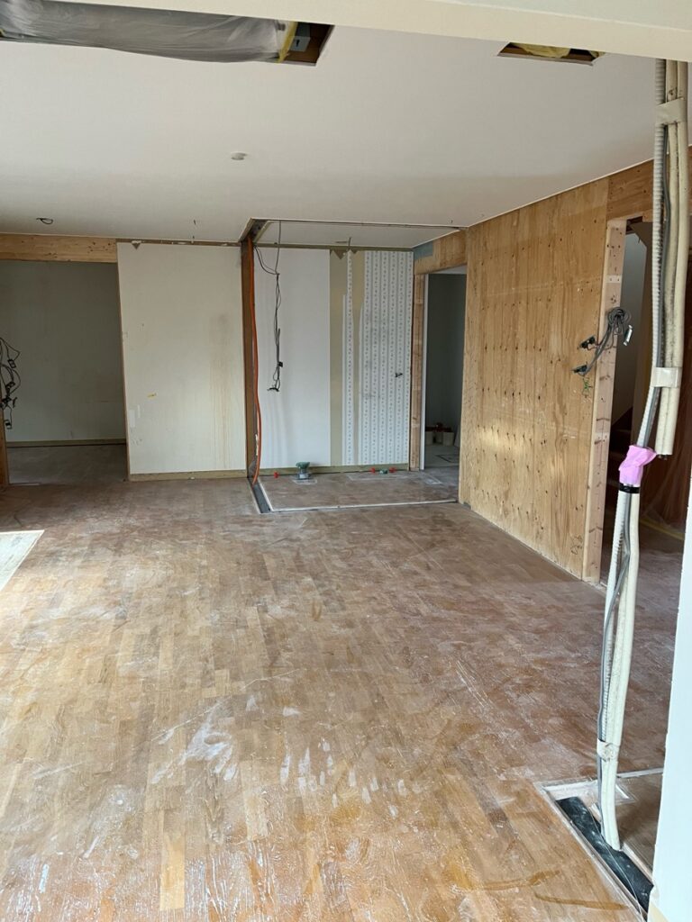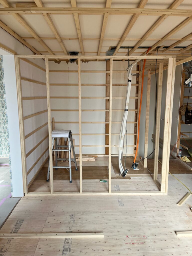 写真中央のスペースは、以前は広いトイレでしたが、今回の工事で標準的なサイズのトイレへと変更していきます。
