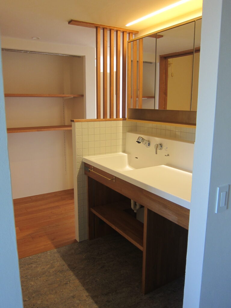 水廻りや収納は回遊動線でつなぎ、アクセスしやすく暮らしやすい間取りとしています。