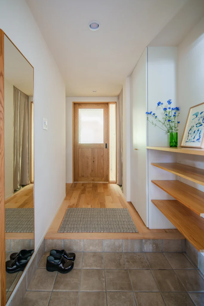 ・ガラスの造作建具から光が届く明るい玄関ホール