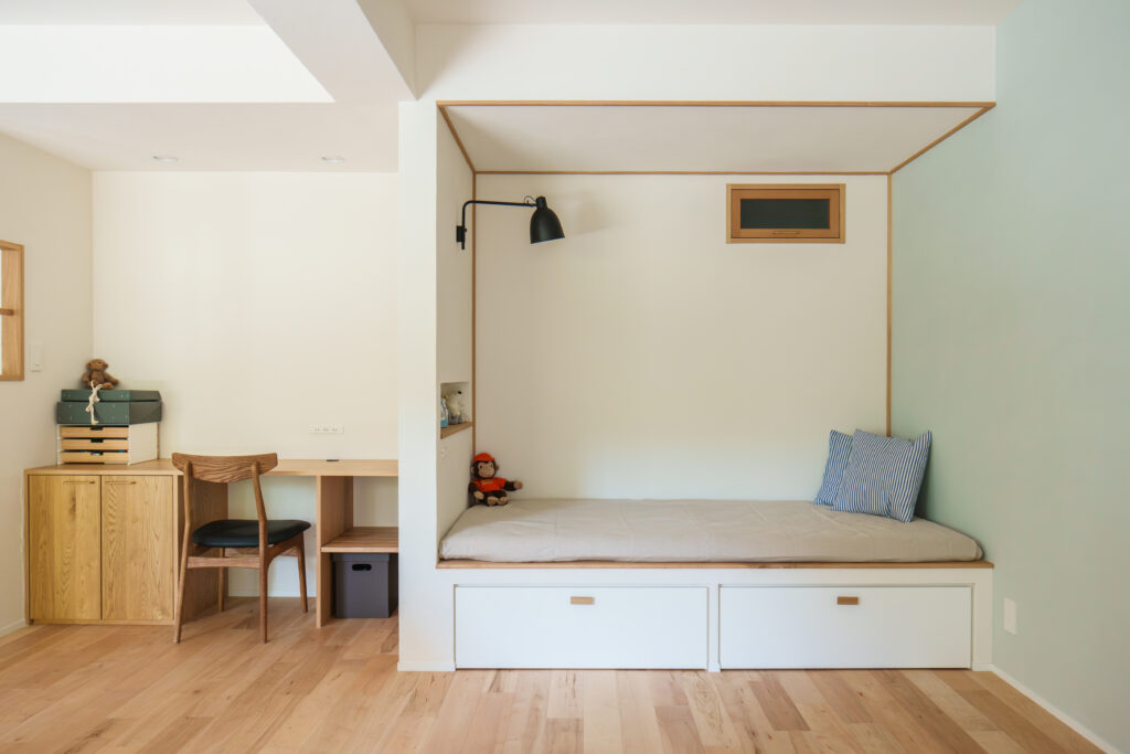 読書をしたり、寝転んでくつろいだりできるヌックなど、