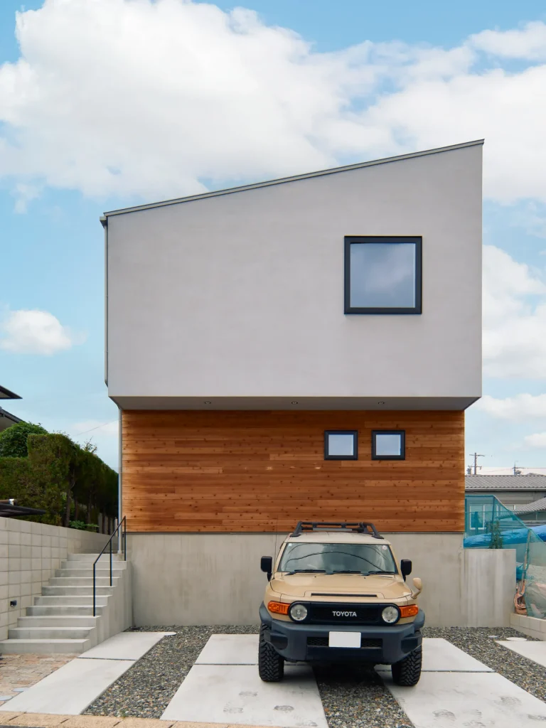 キャンプやDIYがお好きなご家族のために、1階の半分を土間スペースに。