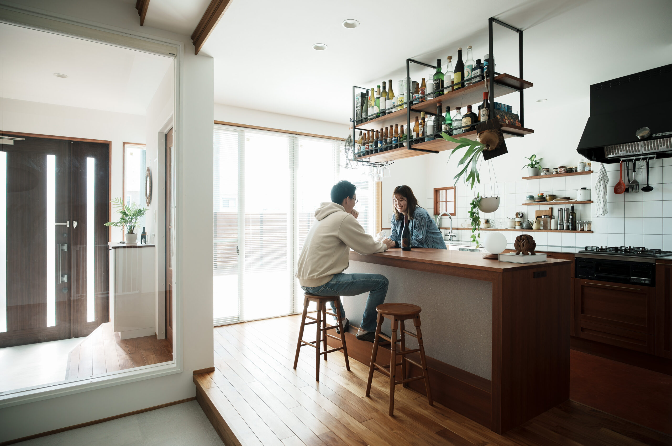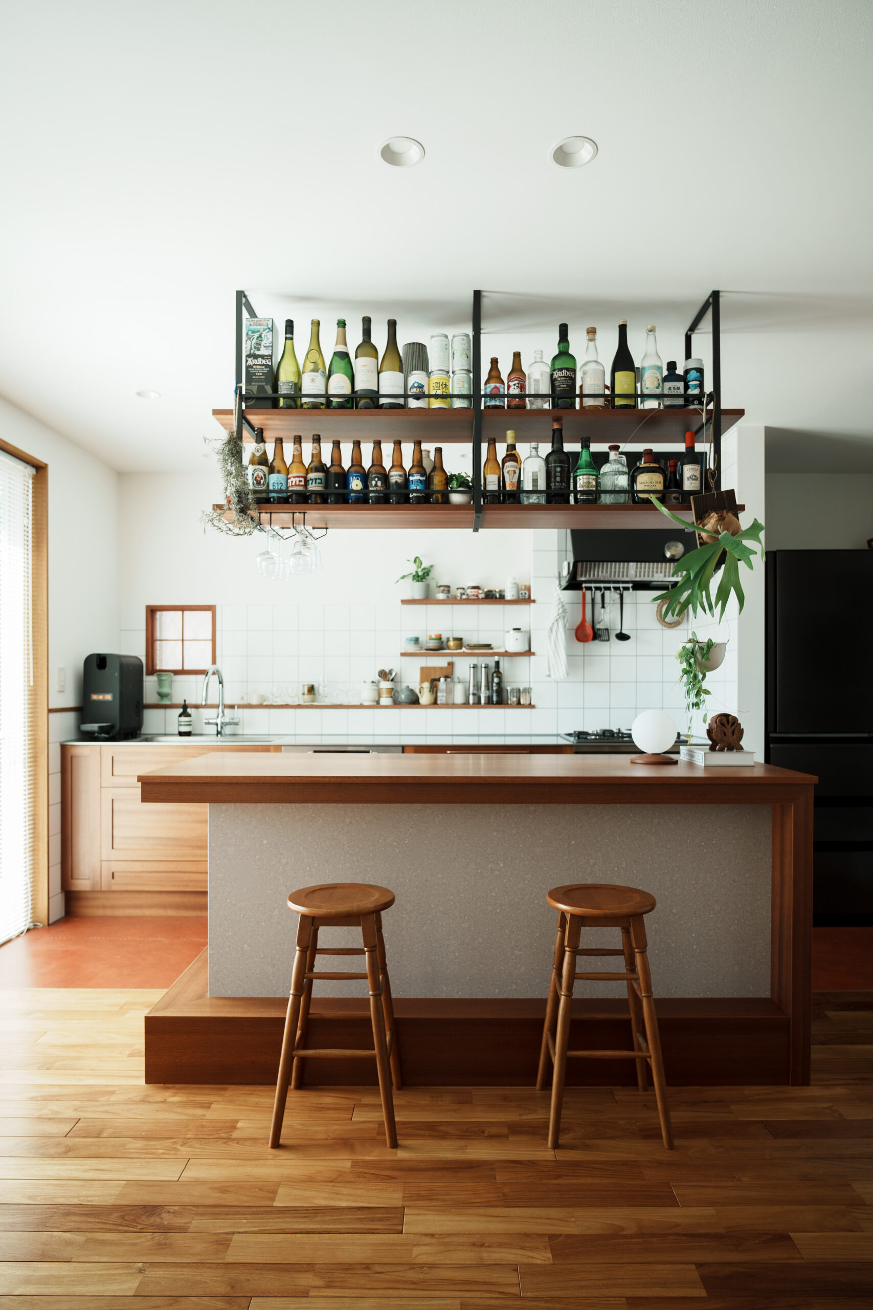 名古屋市郊外の平屋を、お客様のライフスタイルに合わせてリノベーション。ご夫婦ともお酒がお好きだということで、住まいのどこでも美味しく、そして楽しく飲める空間づくりがテーマです。