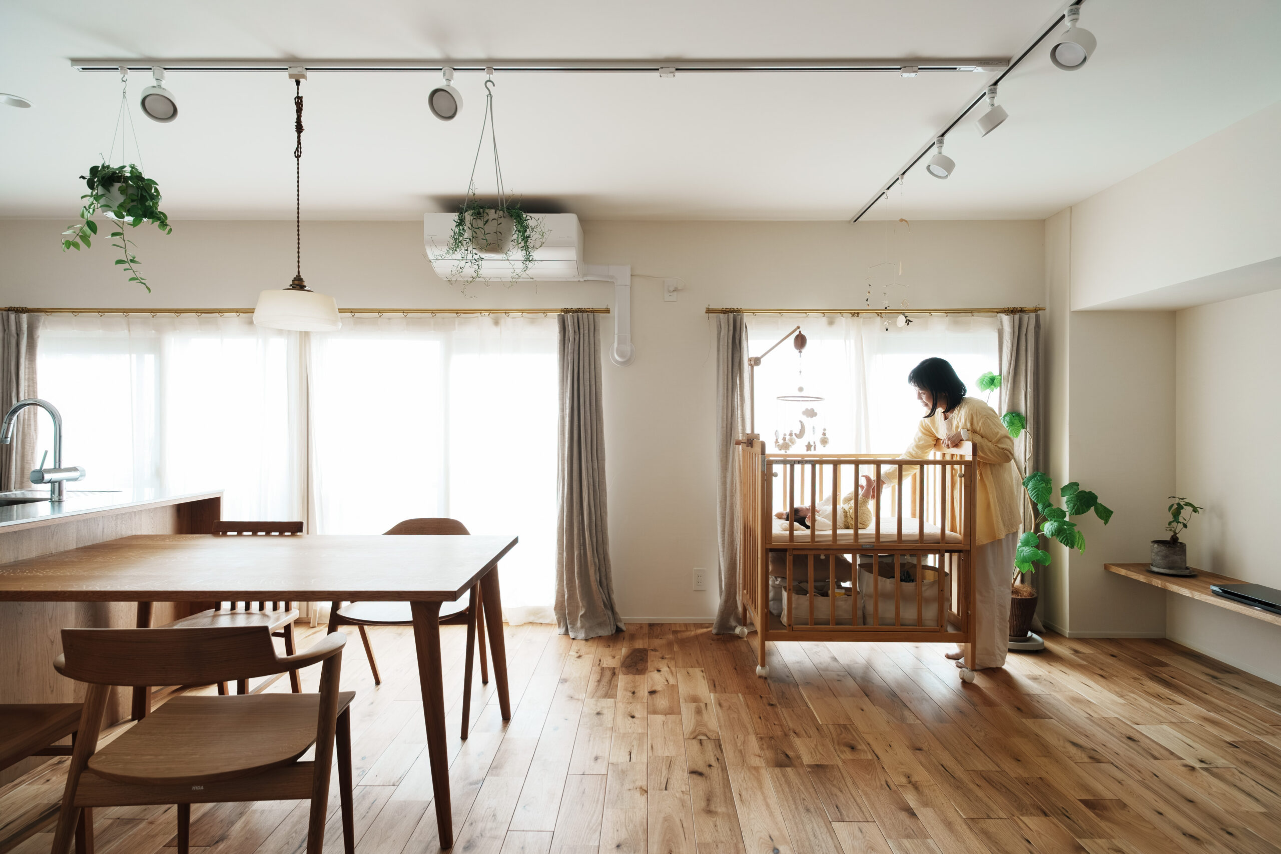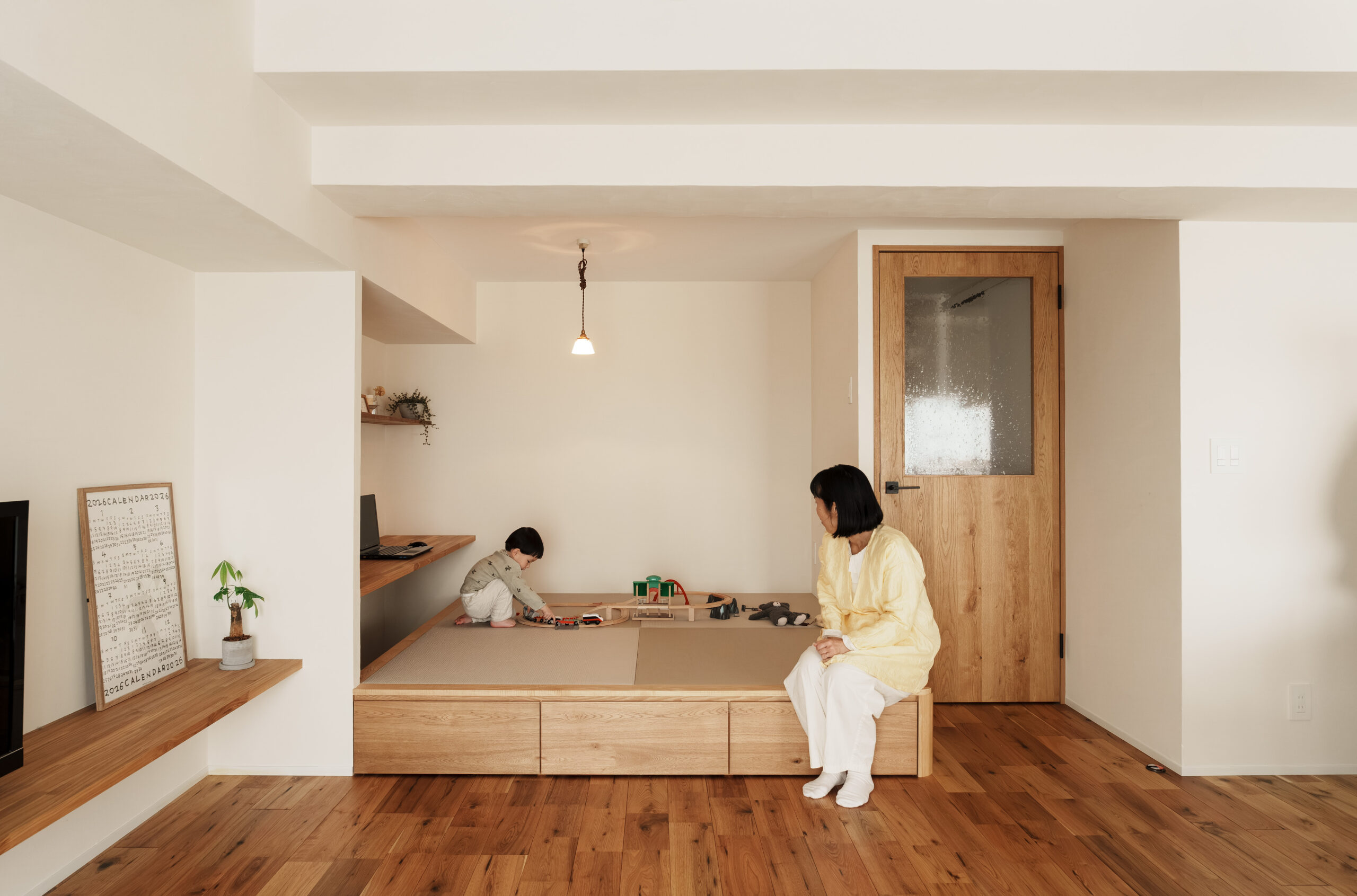 LDKには小上がりを設け、リビングとゆるやかにつながりながらも多様な居場所を確保。