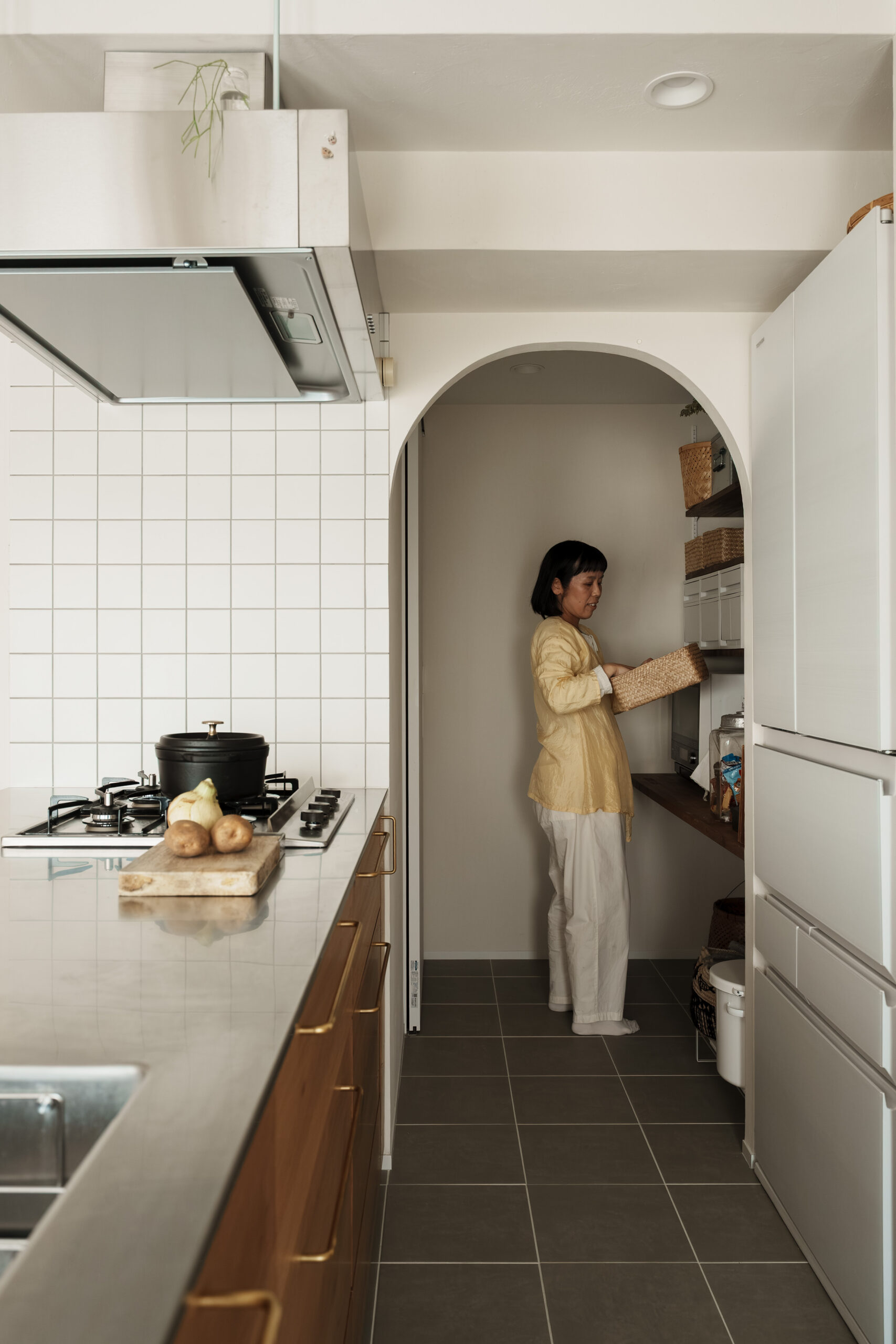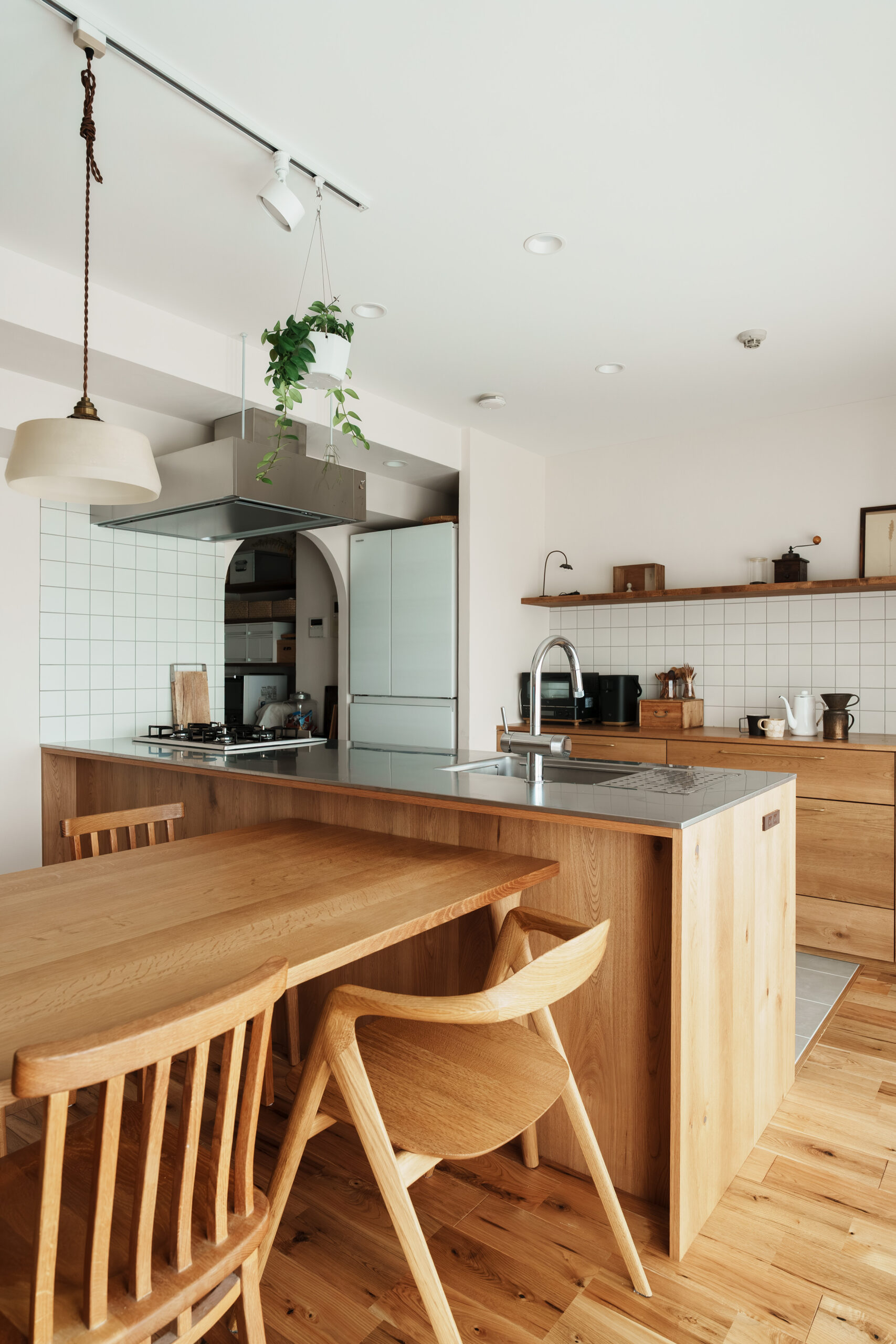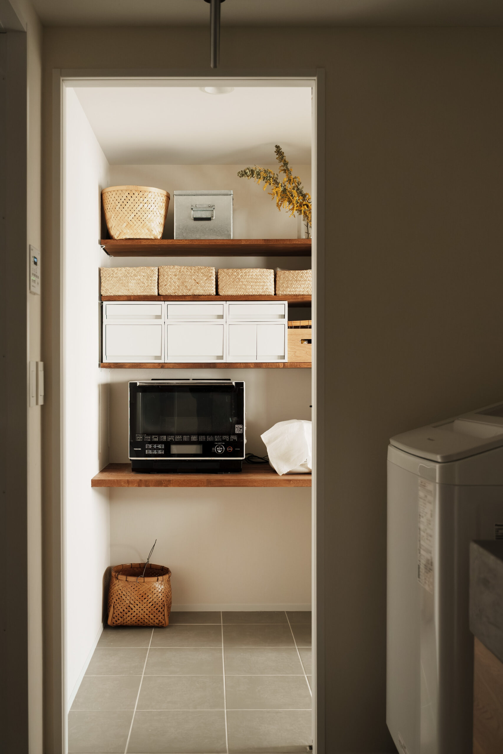 キッチンからパントリー、洗面、廊下へとつながる回遊動線を計画することで、日々の家事や身支度が自然とスムーズに整う住まいとしました。