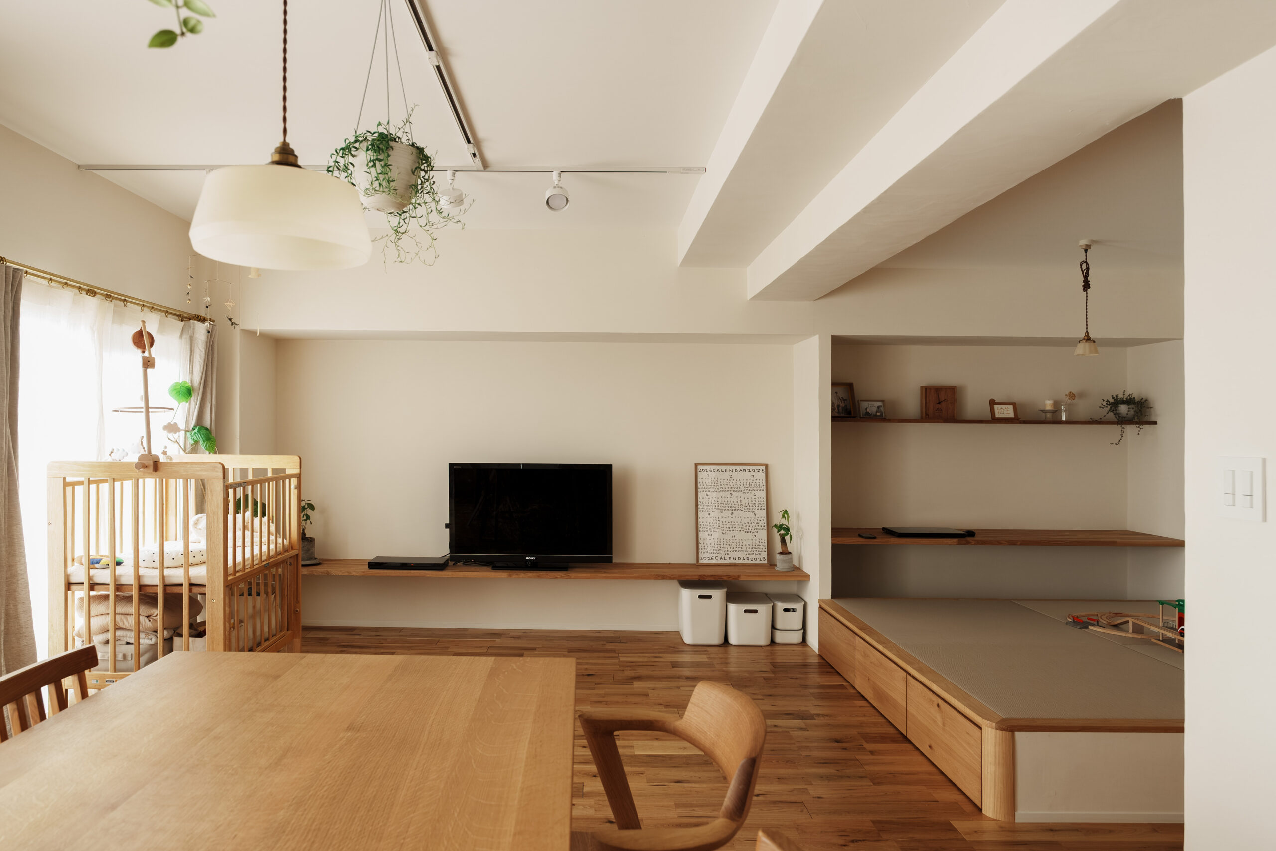 収納や造作家具も空間に合わせて設計し、家族の時間をやさしく包み込むような住まいです。 -